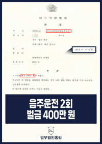 음주운전 2회차 벌금 400만 원 - 장거리 음주운전 단속됐지만 변호인 조력으로 벌금형 성공