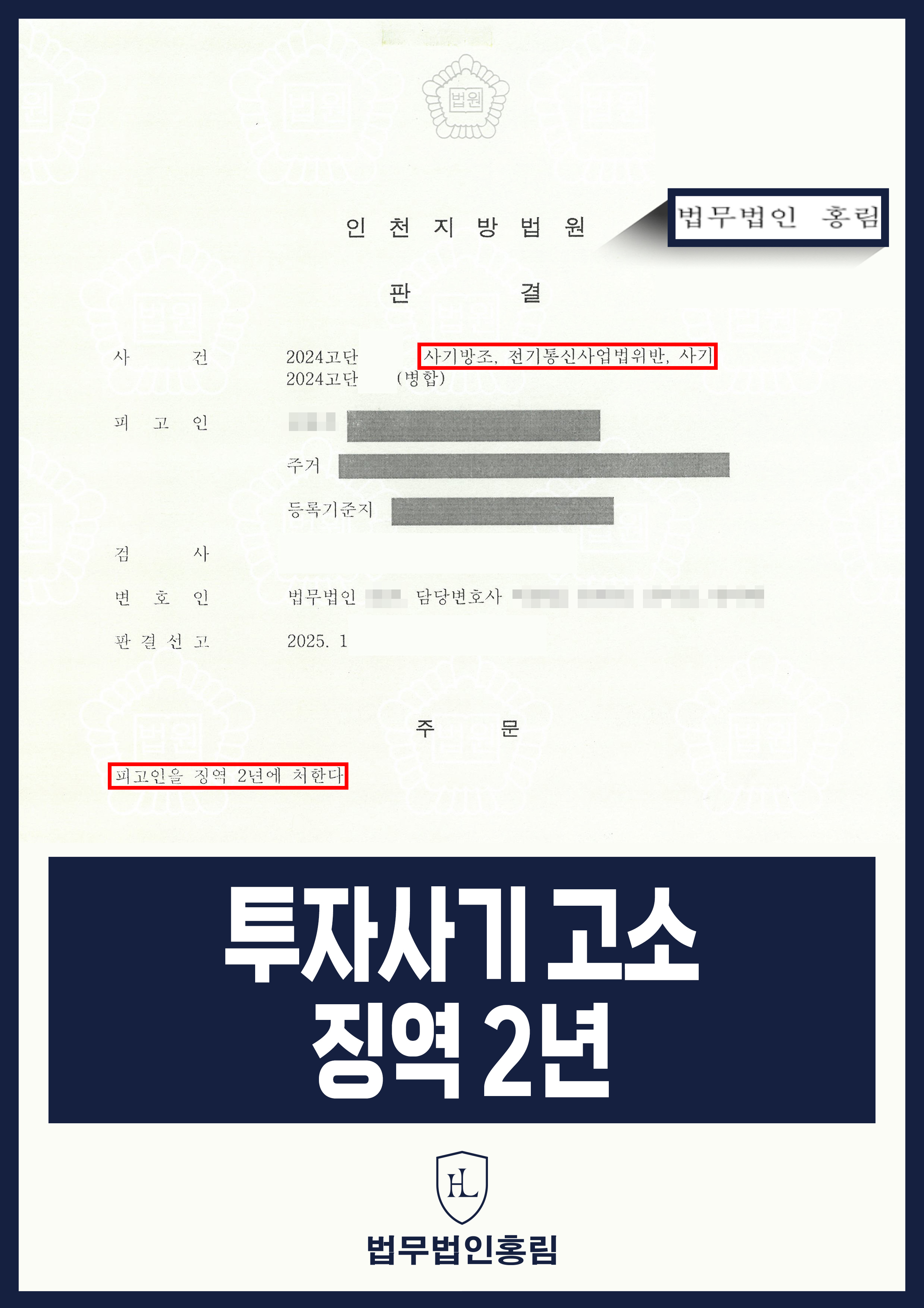 이에 본 법무법인은 의뢰인과 함께 관련 자료를 살펴보았습니다. 우선 피의자 B씨는 법령에 허가받지 않고 A씨에게 주식 투자 명목으로 금원 교부받은점, 기존 주식으로 손실 본 것을 만회 및 보상해주겠다며 단기간 내에 몇 배의 투자 수익을 볼 수 있다며 고소인을 기망한 점, 주식이 상장 안될 시 원금을 보장한다는 내용의 계약서를 보여주며 기망한 점, 수익이 발생하지 않았음에도 불구하고 계속해서 B씨는 투자금을 더 종용한 점, 환불을 요청하자 투자금을 받기 위해서는 세금 납부를 해야 한다며 금전을 계속 갈취하려는 점 등으로 A씨의 투자금을 돌려주지 않고 잠적하였습니다.