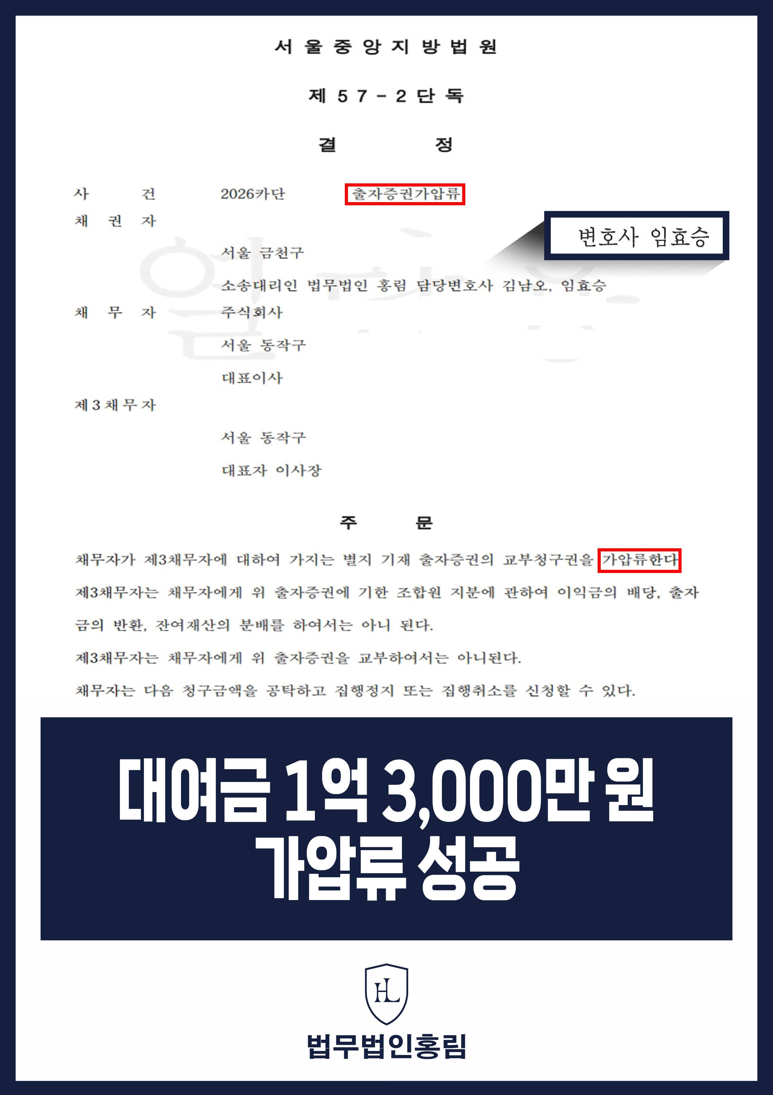 대여금 1억 3,000만원 가압류 성공 - 지인에게 빌려준 대여금, 공제조합 출자증권 가압류 성공 2026.02.09