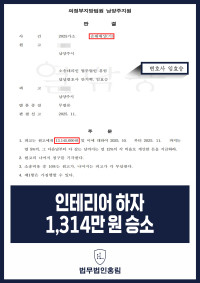 인테리어 하자 1,314만 원 승소 - 신혼부부 아파트 매매후 인테리어 하자로 소송 승소