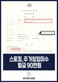 스토킹, 주거침입미수 벌금 90만