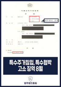 특수주거침입, 특수협박 고소 징역 8월 - 내부 고발 의심받고 피해입은 의뢰인, 고소해 직장 동료 징역형 성…