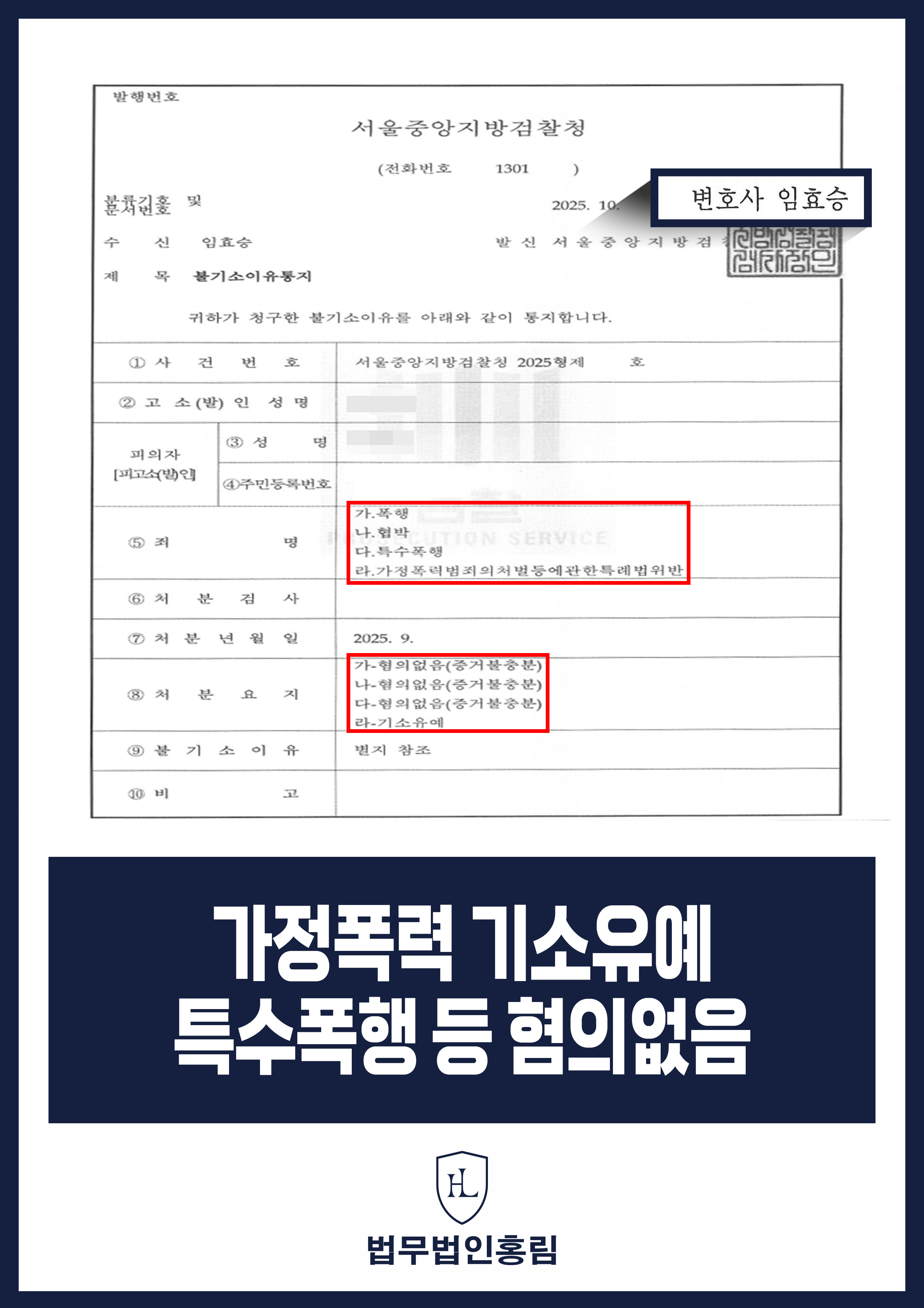 가정폭력 기소유예, 특수폭행 등 혐의없음 - 아내와 다툼으로 벌어진 다수의 범죄 혐의 없음, 기소유예 성공 2025.11.06