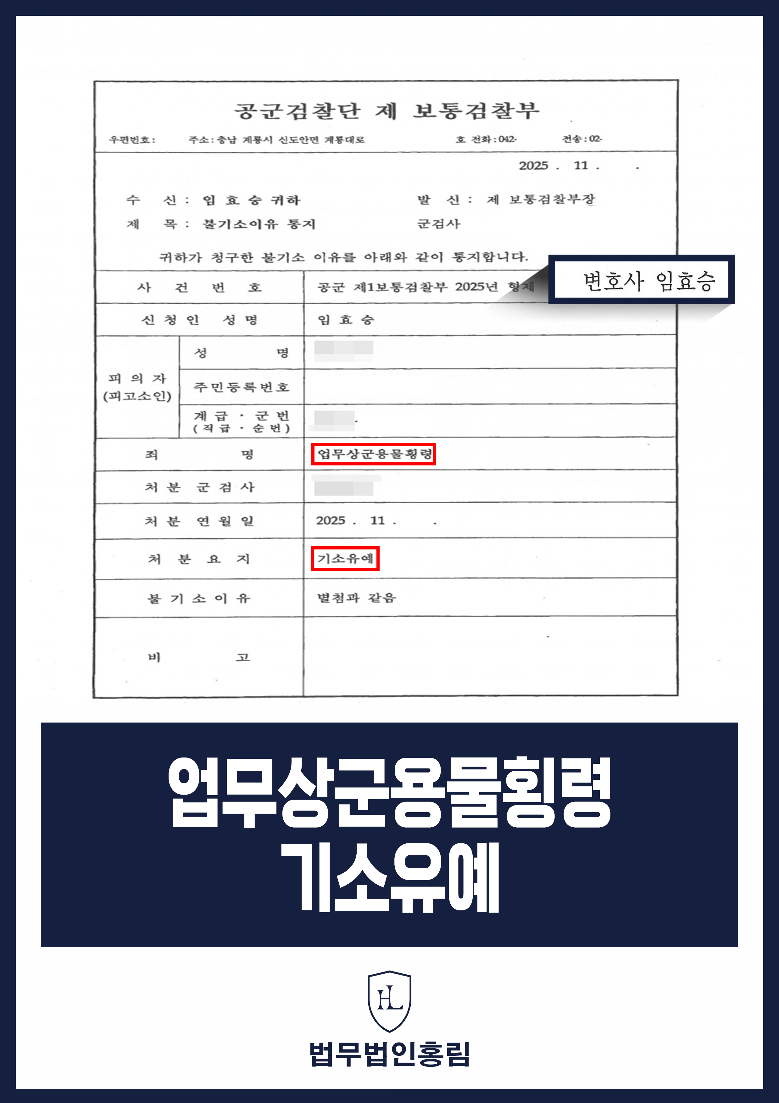 업무상군용물횡령 기소유예 - 1천여만 원 보급품 임의로 횡령했지만 변호인 조력으로 기소유예 2025.12.15