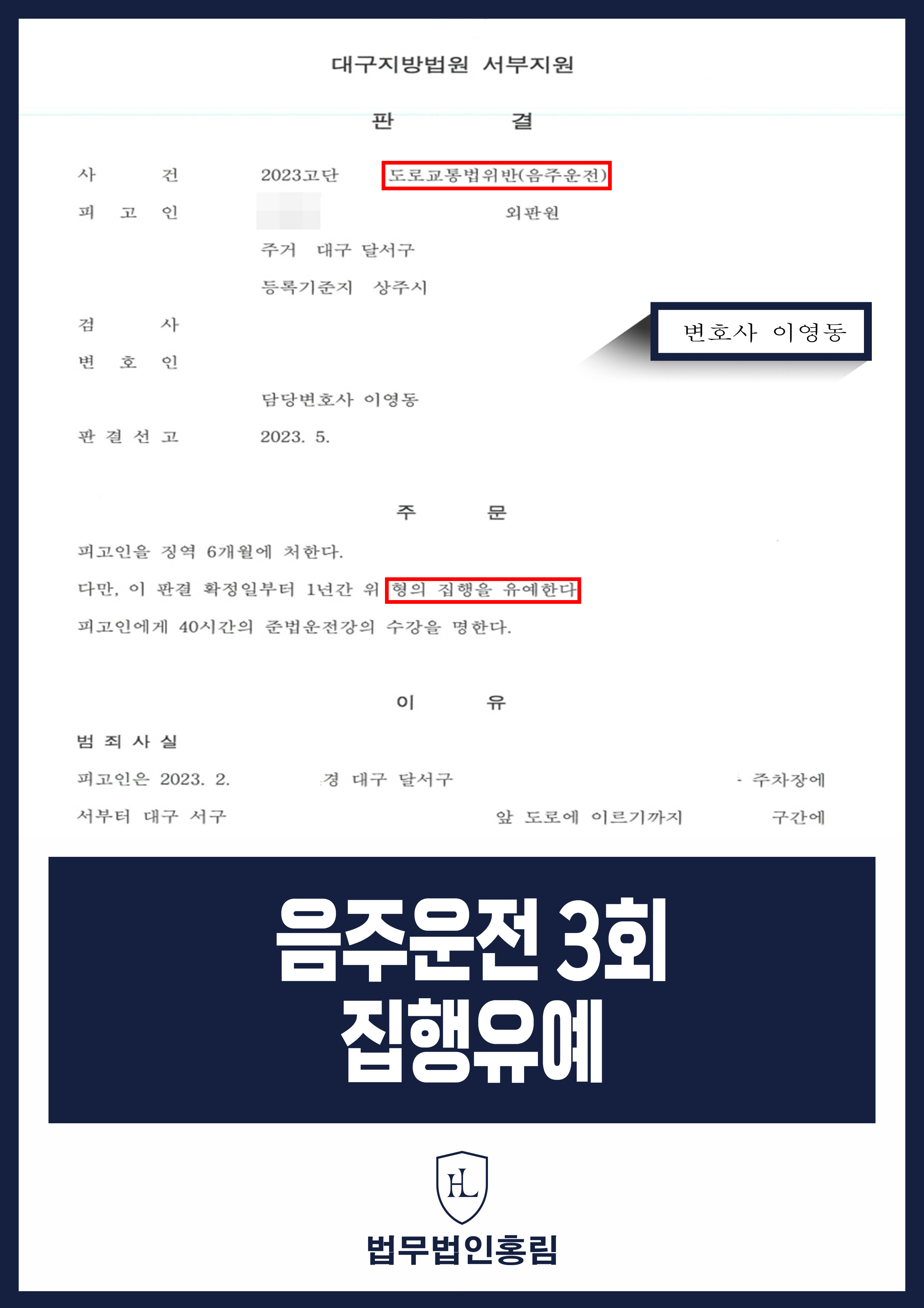 음주운전 3회 집행유예 - 삼진아웃 실형 위기 앞둔 영업 직원, 법적 조력으로 집행유예 2025.12.15