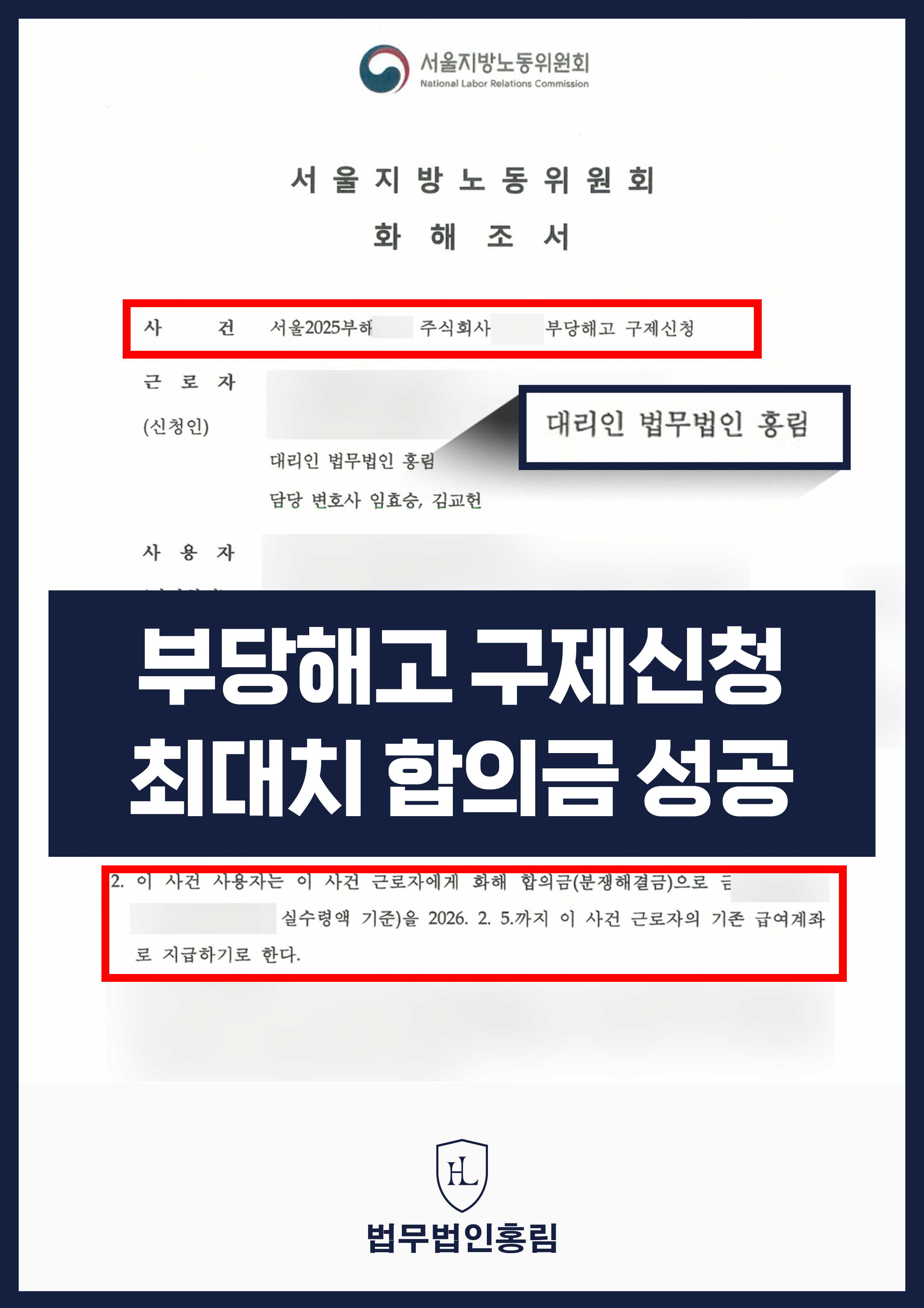 부당해고 구제신청 최대치 합의금 성공 - 수습근로자에 대해 회사가 본채용 거부를 하였으나, 구제신청을 통해 부당해고로 인정된 … 2026.01.13