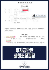 투자금반환 화해조정결정 - 수천만원 투자했지만 돌려주지 않아 소송 제기해 반환 이끌어낸 사례