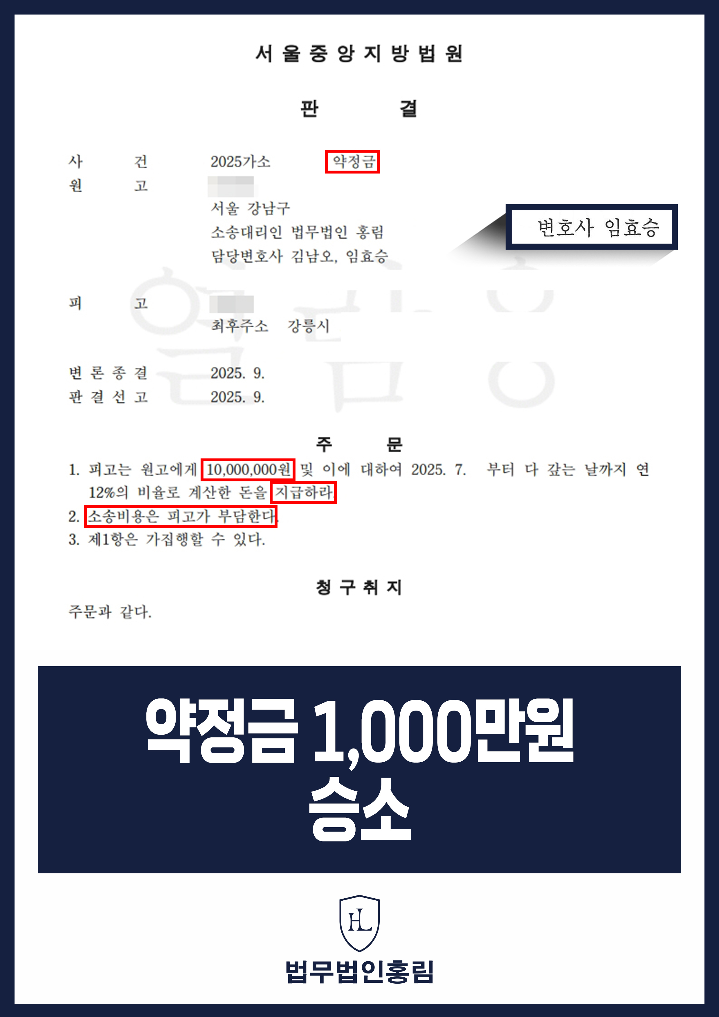 약정금 1,000만원 승소 - IT 개발 용역 의뢰했으나 지키지 않아 약정금 소송 청구해 승소 이끈 사례 2025.09.16
