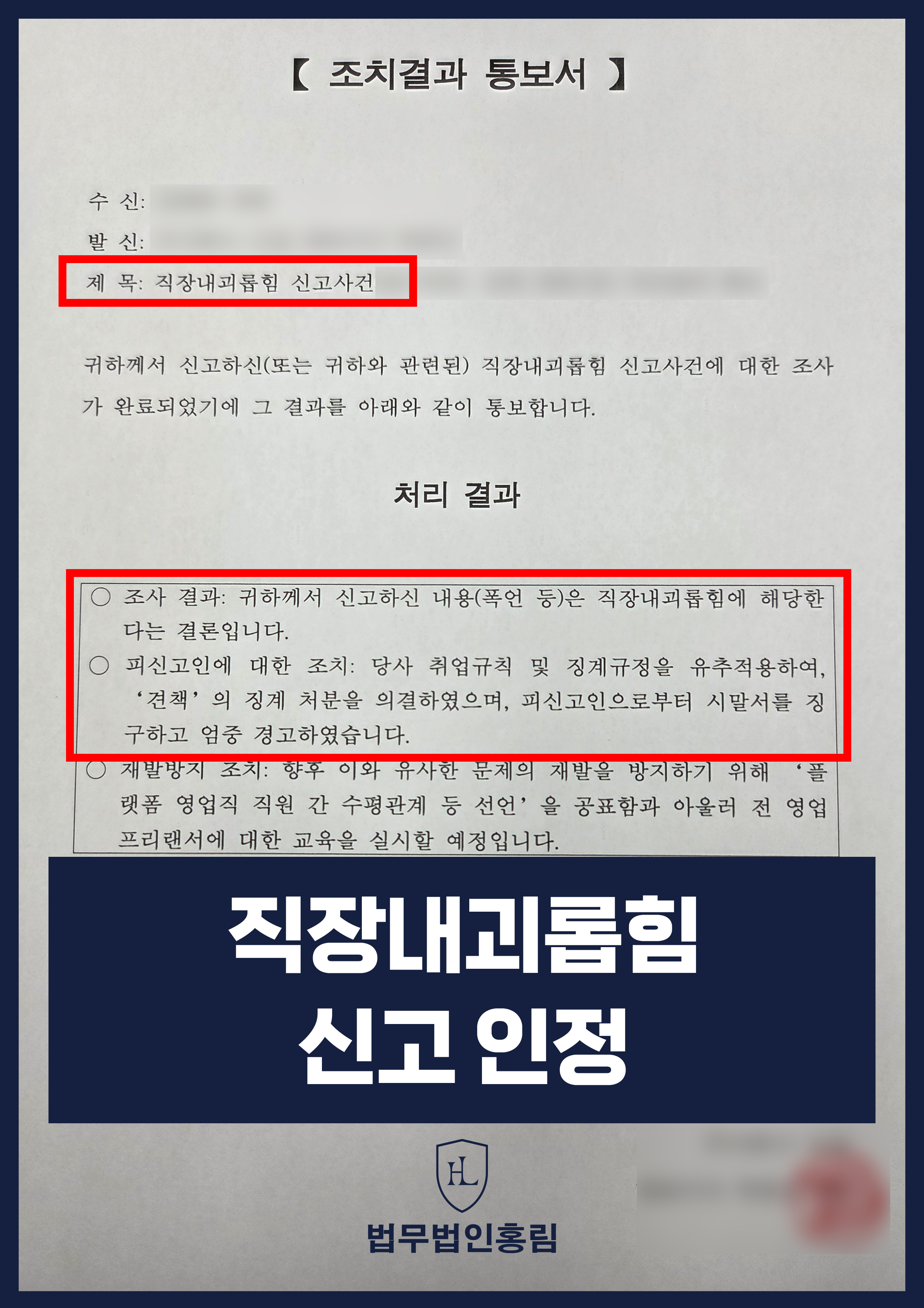 직장내괴롭힘 신고 인정 - 상사의 지속적인 폭언과 따돌림 등으로 노동청 진정을 진행하여 괴롭힘 인정을 받은 성공사례 2026.01.22
