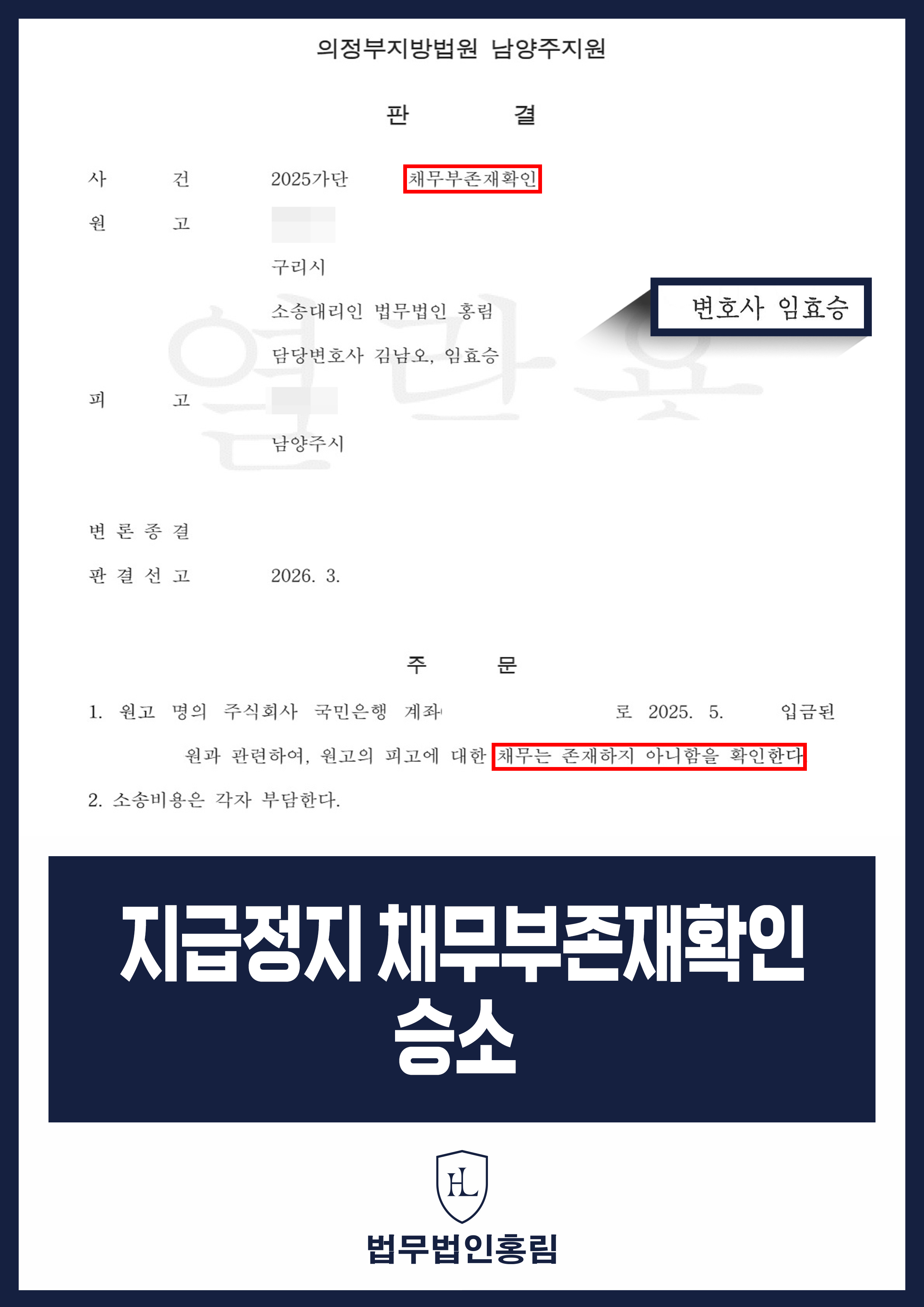 3. 채무부존재확인소송 주도 및 승소 이끌어냄